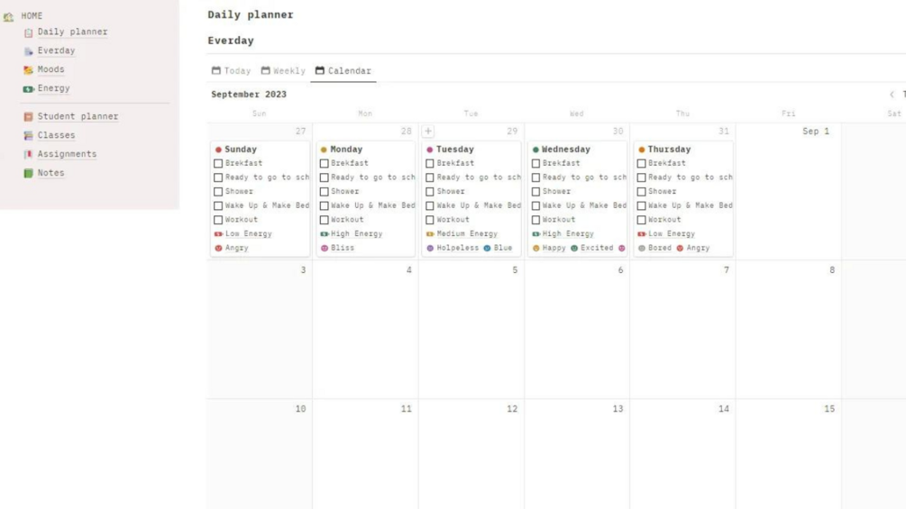 - 4. Student planner with different classes and you can add more classes to yours
